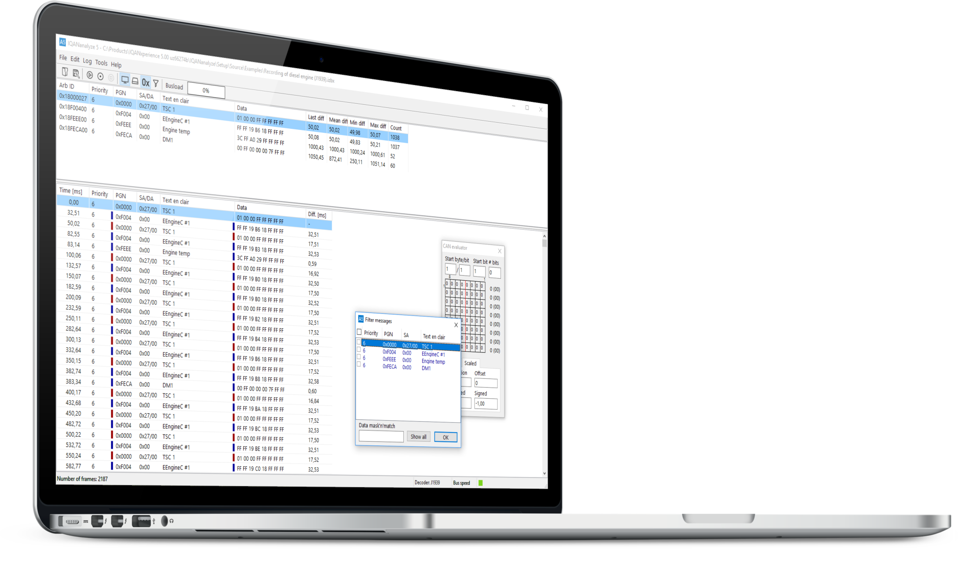 IQANanalyze is a general purpose CAN bus analyzer. With IQANanalyze you can, in an easy manner, view the traffic on the CAN bus. You can also record the traffic data that is viewed and save it for later use.
